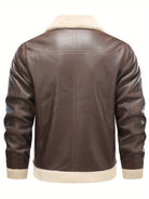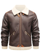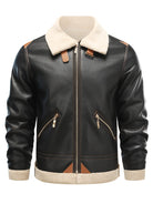 Diese Jacke verfügt über eine sichtbare Außenseite in Lederoptik sowie ein vollständig gefüttertes Innenmaterial. Der breite Kragen sowie die Säume sind mit weichem Besatz versehen. Zwei seitliche Reißverschlusstaschen und eine asymmetrische Front mit dekorativem Riegel ergänzen das Design. Die Jacke zeigt eine klare Verarbeitung mit betonten Nähten und leicht strukturierter Oberfläche.